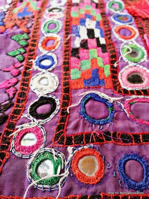 Mirror work was mostly done by the states of Rajasthan, Gujarat and Haryana, hence these three states form the major hubs for mirror work. Nowadays it is most common to see shisha in parts of Gujarat, Rajasthan, Haryana, Delhi, Madhya Pradesh, Bihar, Karnataka, Andhra Pradesh, Manipur (bordering Myanmar), Baluchistan (region in Pakistan which borders east Iran), Punjab region (both India and Pakistan)  and Sindh (Southeast of Pakistan) bordering Rajasthan and Gujarat; situated right next to the Rann of Kutch, a heaven for much embroider artwork. The people in these states wear bright-colored clothes that are embellished with shisha work. Such a pity that I wasn’t into shisha embroidery then as I am now, because I have cycled through all these states, except Manipur. One reason to go back now!