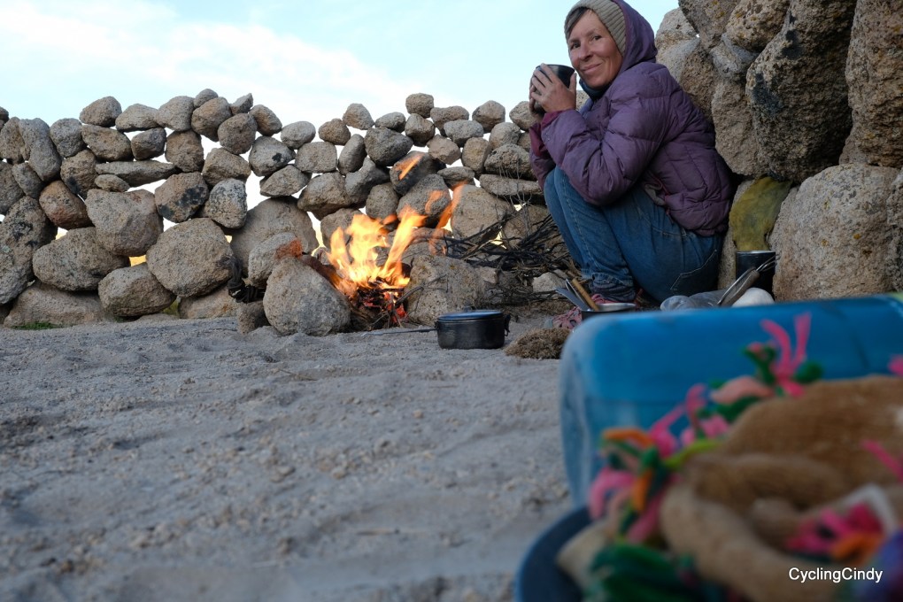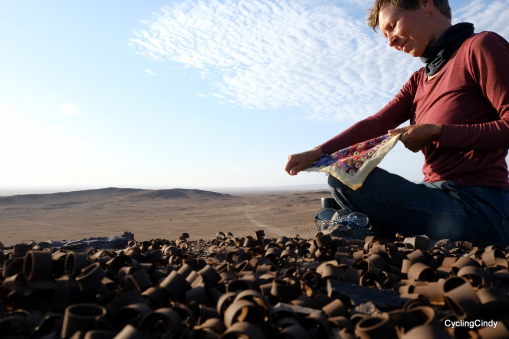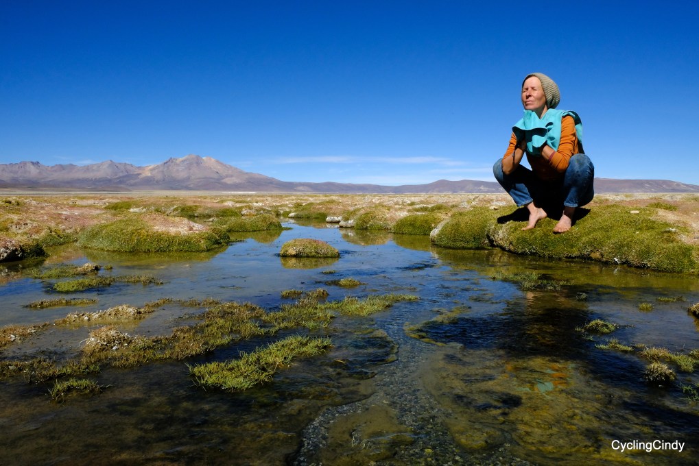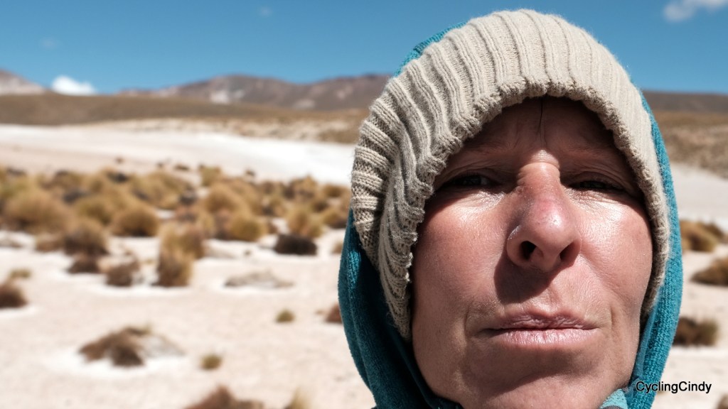 Than, at last, we managed to stay 2 nights in the place where I experienced the height of my cycling odyssey: Atacama desert. This was only the very beginning of the driest desert on earth but Geo was not eager to go that direction, instead we rested in the little shadow we could find. I lay the last hand on the pouch here and went a bit overboard with selfies. But hey, I was overly excited to be in this desert and knew I had to take full advantage before we would drive on (not my choice of travel as it turned out).