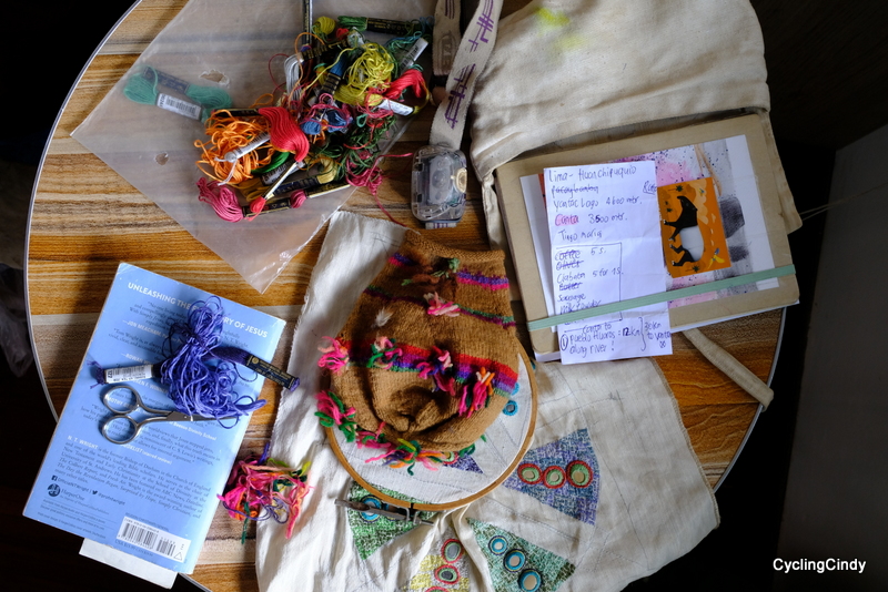 When we stayed a couple of days in Tupiza, Bolivia, I wanted to make a hike with one night of camping in between. I had everything figured out except that there was a collapse of huge boulders blocking the path carved out deeply into a canyon. There was no way to go around it, and instead I enjoyed an early stop with a long evening of embroidery, camp fire and chai.