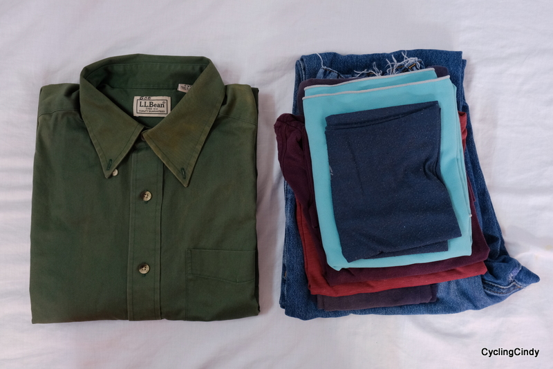 Materials I used are silk hemp cotton from Nepal. The green comes from a men’s shirt we bought in the mercado central in Villazon, Bolivia. An authentic L.L. Bean shirt somehow got there and was cut in pieces once the sun had beaten it. When you are interested in this pouch, click the link.