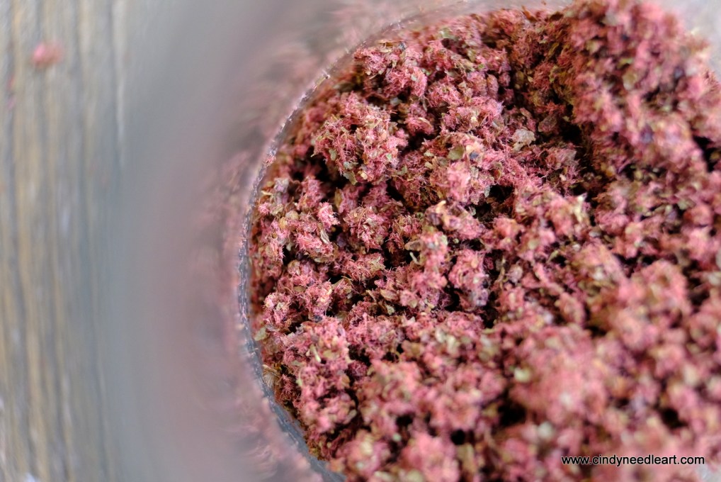 With a bit of effort separate the stalks so you only keep the pink velvet fluffy ‘balls’.