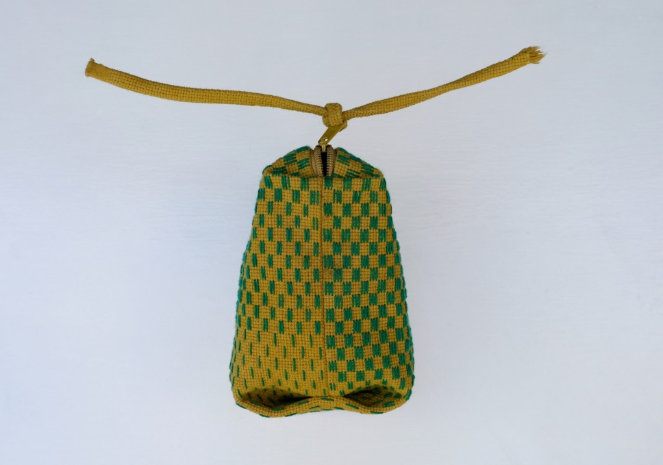 Zipper pouch Fabricated Forest is dyed with goldenrod.