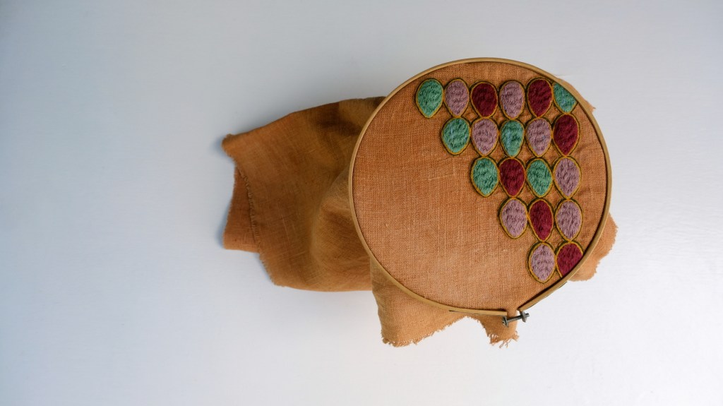 Often fabrics are colored with edibles or with what I find in nature. Never with synthetic color.