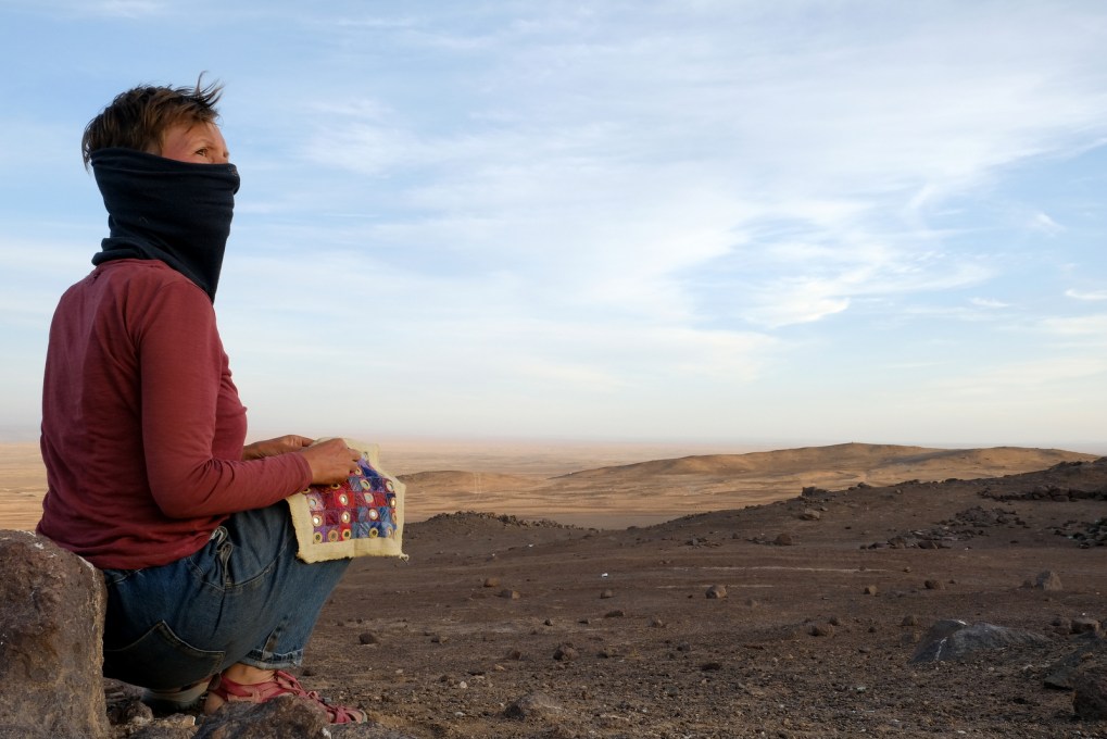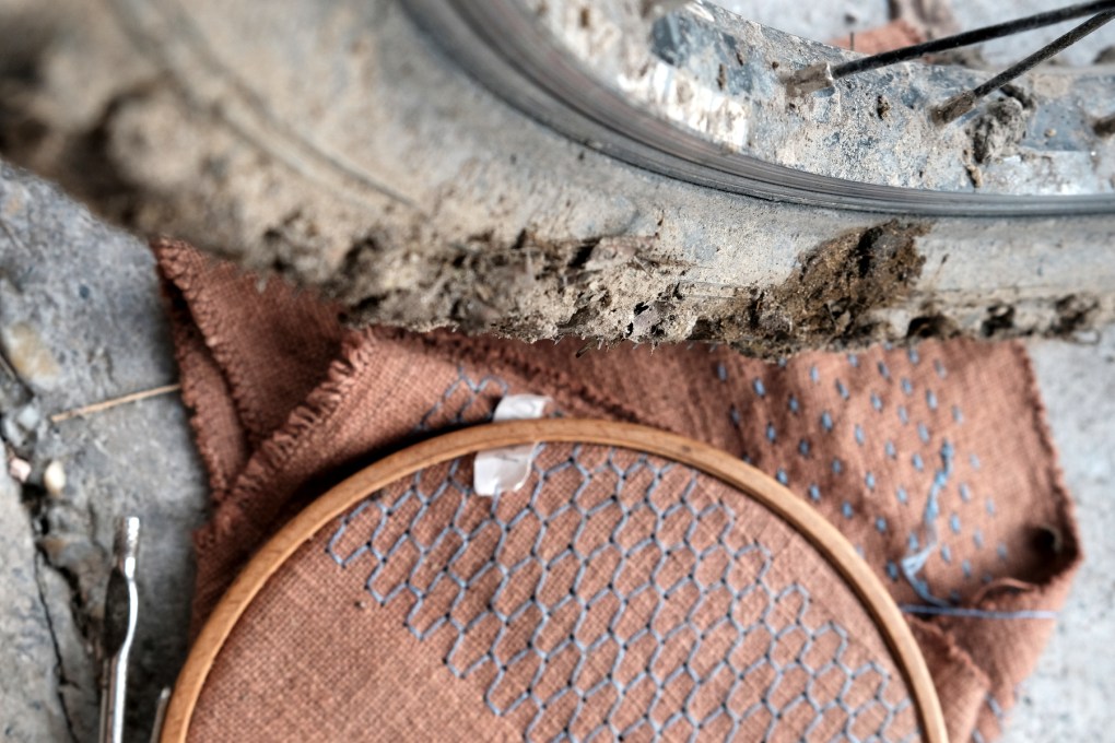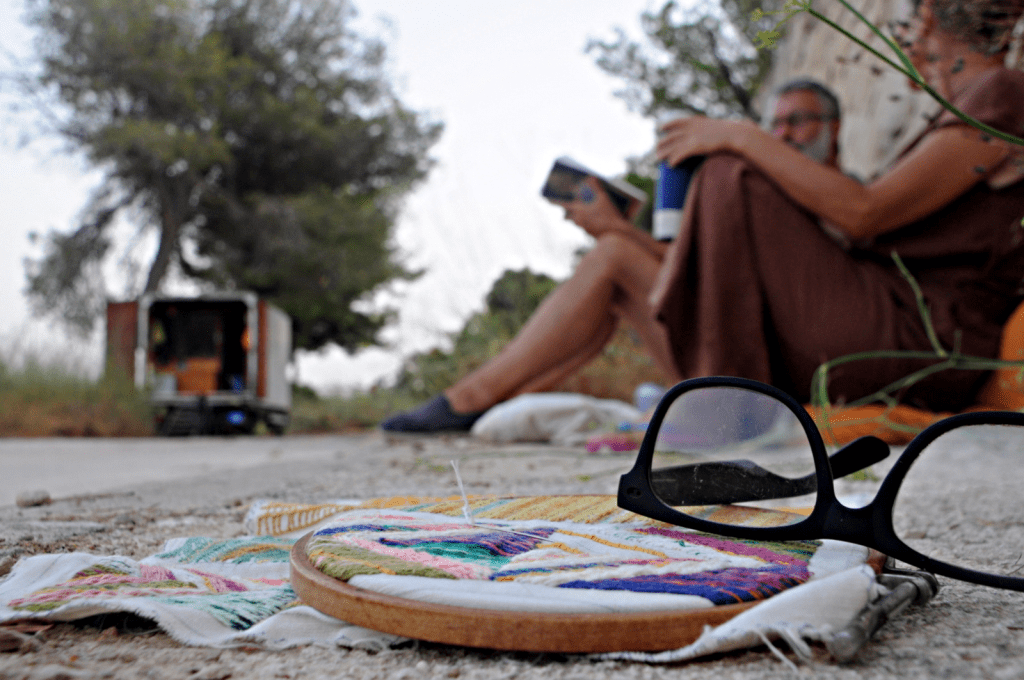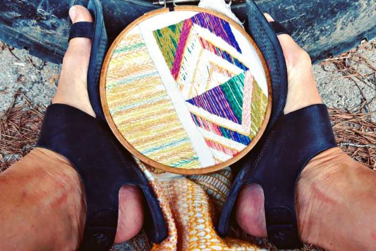 Preferably I embroider outside. Embroidery started for me at campspots while cycling the world. It became the most pleasant thing to do upon waking up and also to end another exciting day full of impressions.
