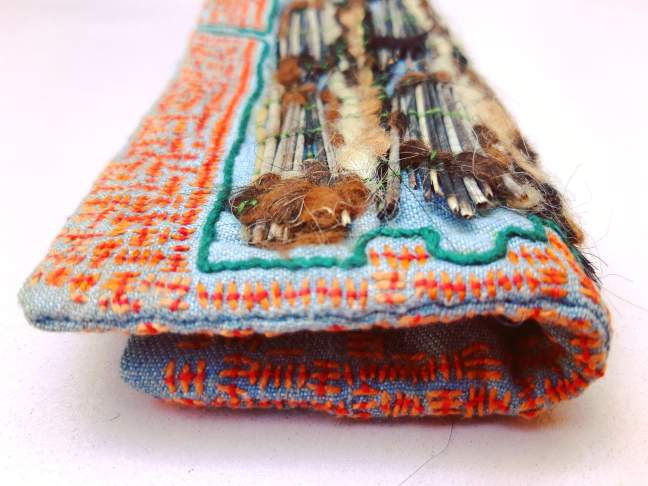 This pouch is made with natural findings. Although I made them to last and they can handle quite a bit, they are not meant to slide in and out your bag on an everyday use. They are more meant to lay at a certain place and cast your eyes on every time you pass by and, naturally, when you use them. They would do well to hold items you treasure. While my motto is ‘what I see must be beautiful to the eyes but practical as well’, these pouches are more leaning towards the first structure of the sentence.