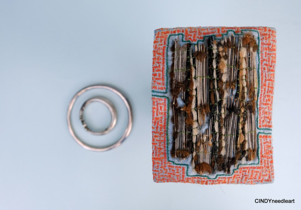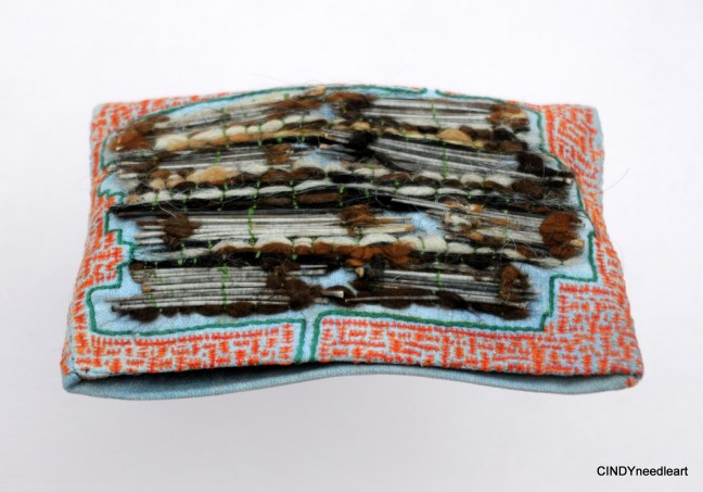 Inspiration: hardly visible but I felt inspired to make a tree. A cherry tree to be precise. The green outline is the tree, the cacti needles are the leafs, or branches or both, and the tiny stitches in orange are the fruits fallen off.