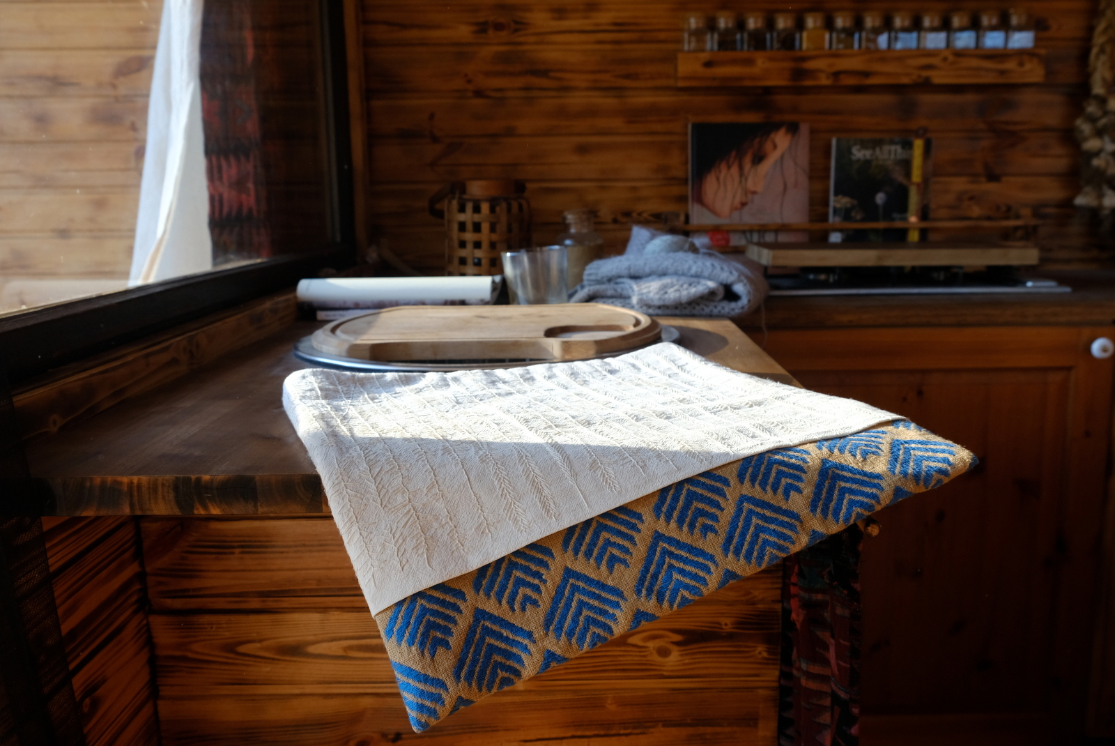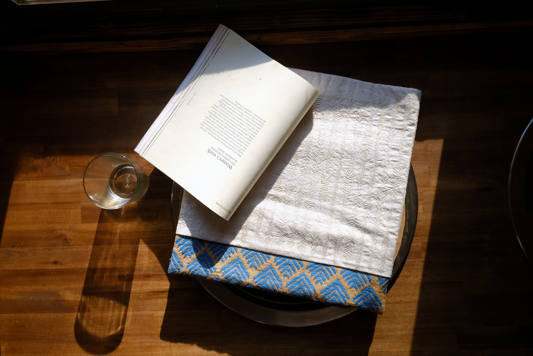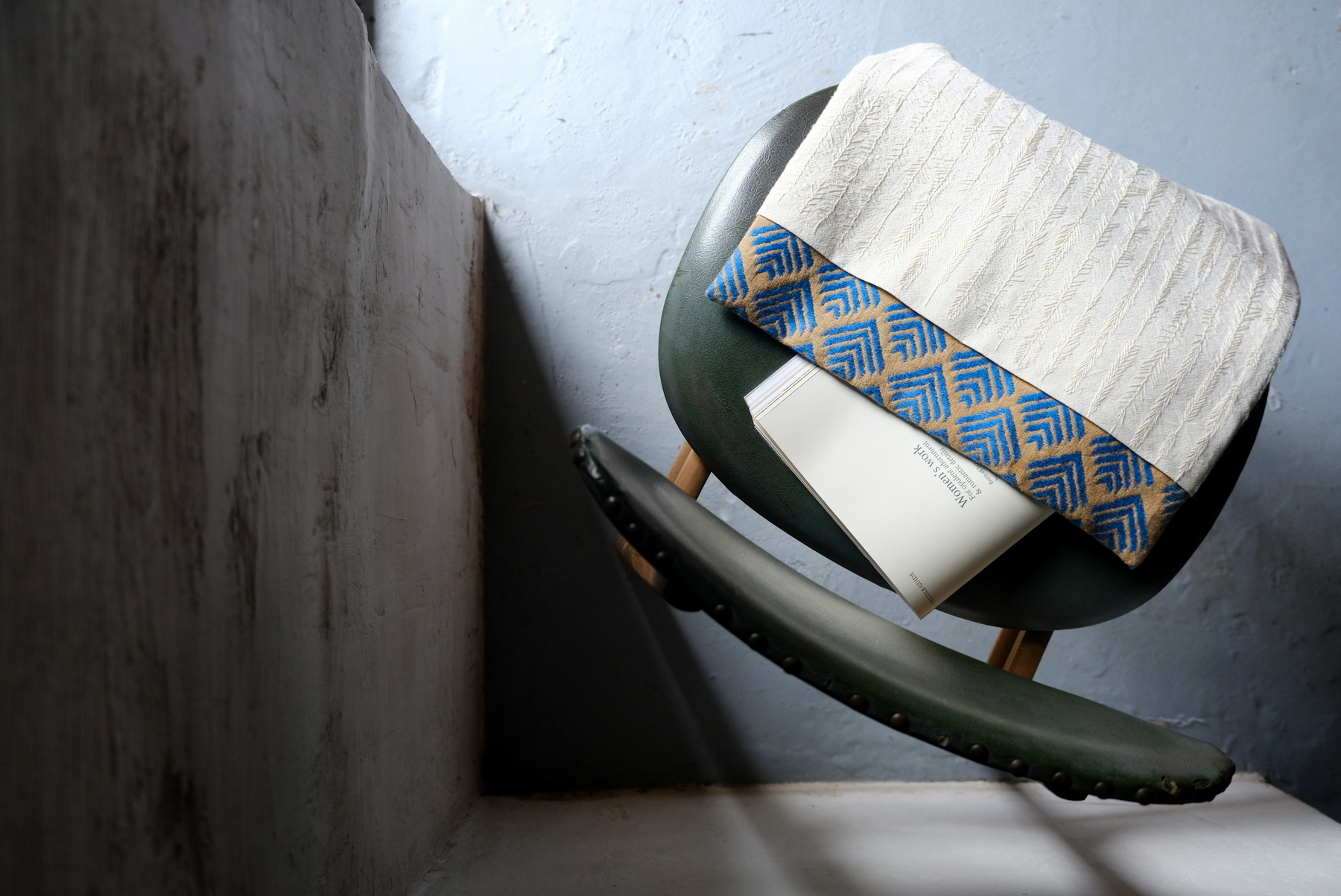 The material used for the embroidered part is hemp cotton from Nepal. The threads used on both pieces of fabric are DMC yarn.
