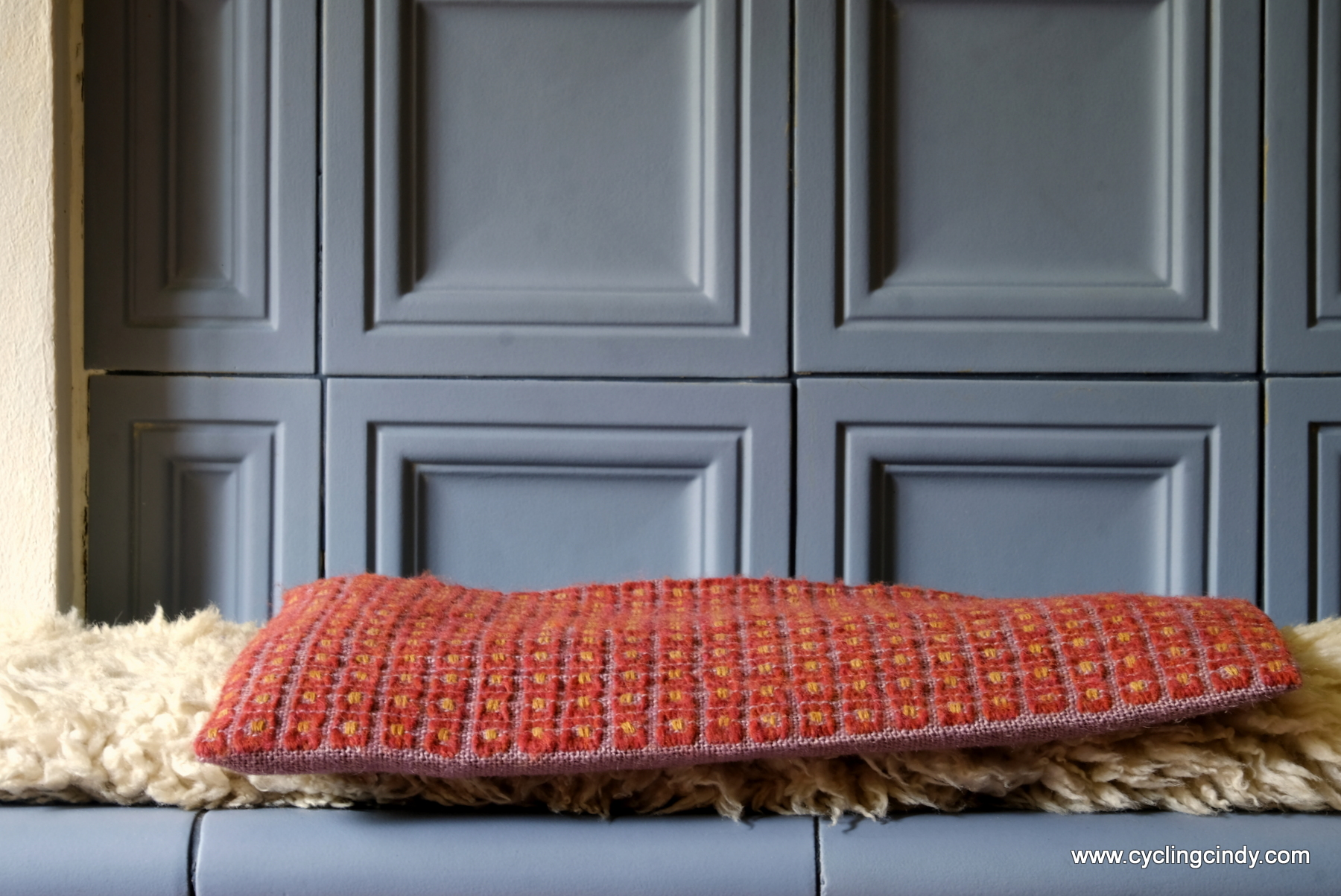 Own design stitch loosely inspired on tilework as I’d seen in Portugal.