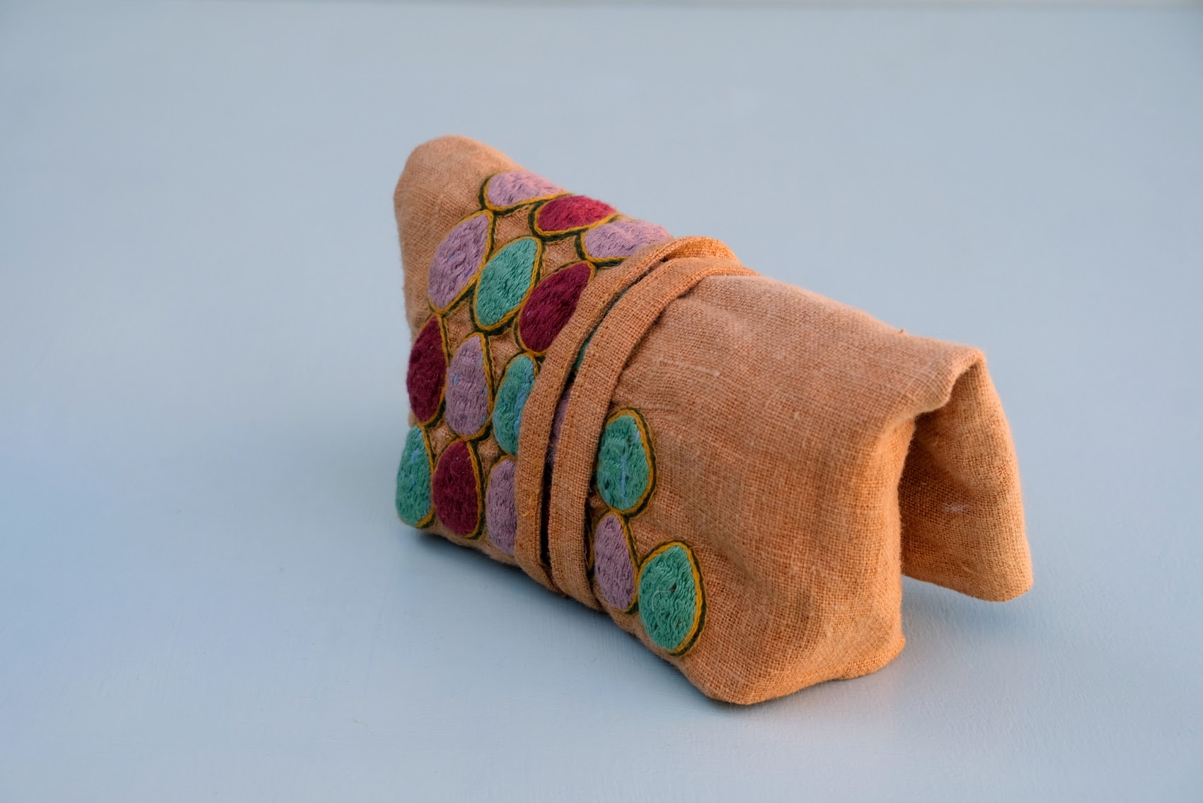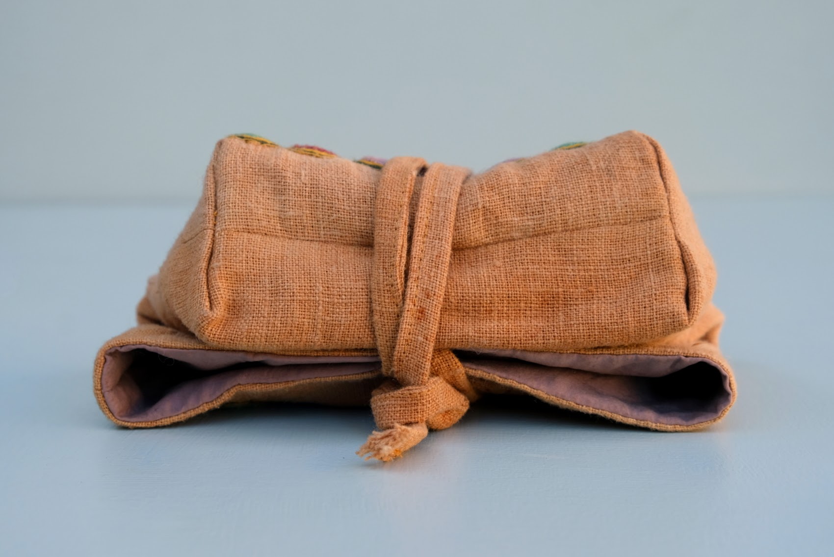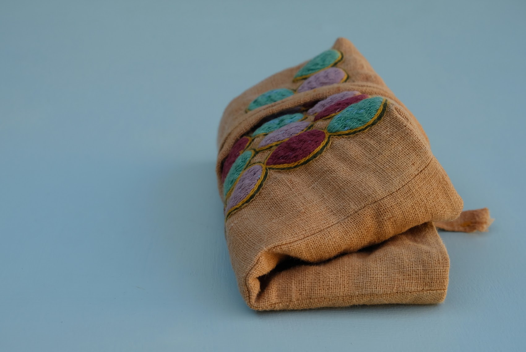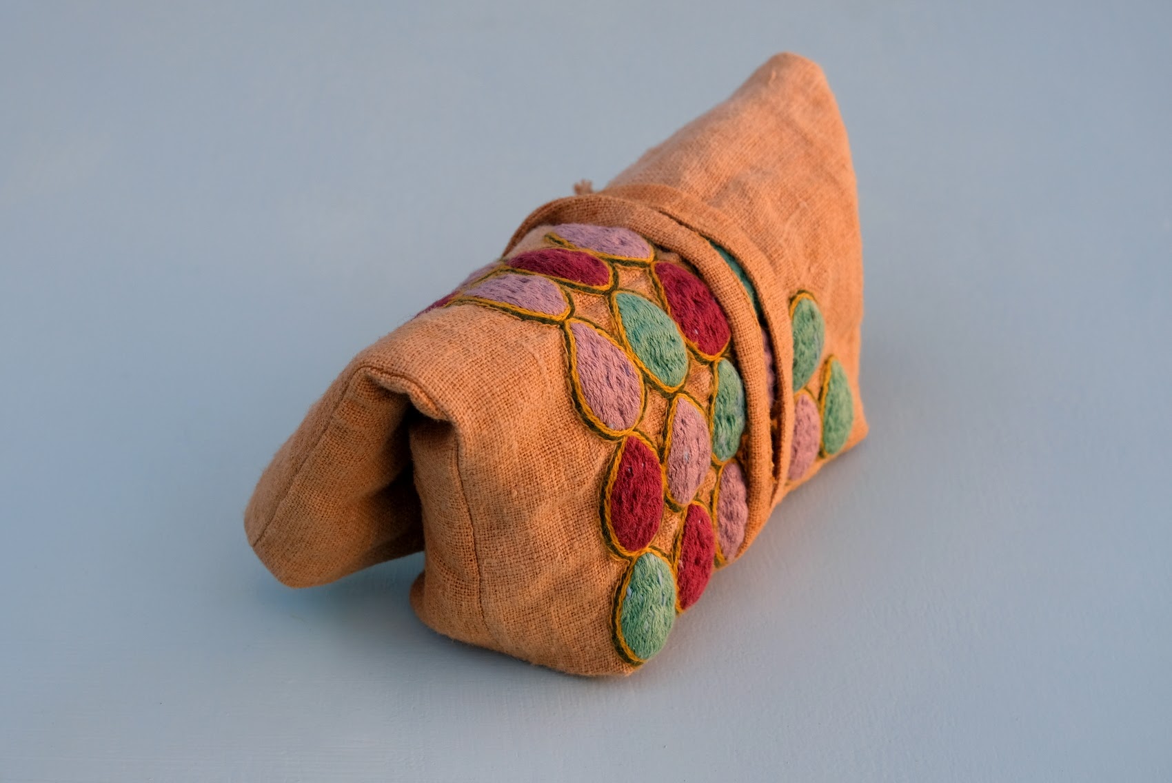 Fabric: the outer side is soft hemp cotton, the inside 100 % silk from a discarded shirt.