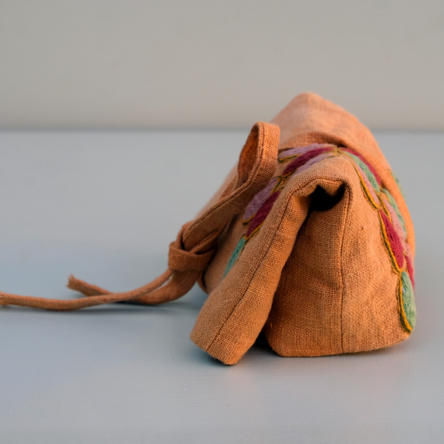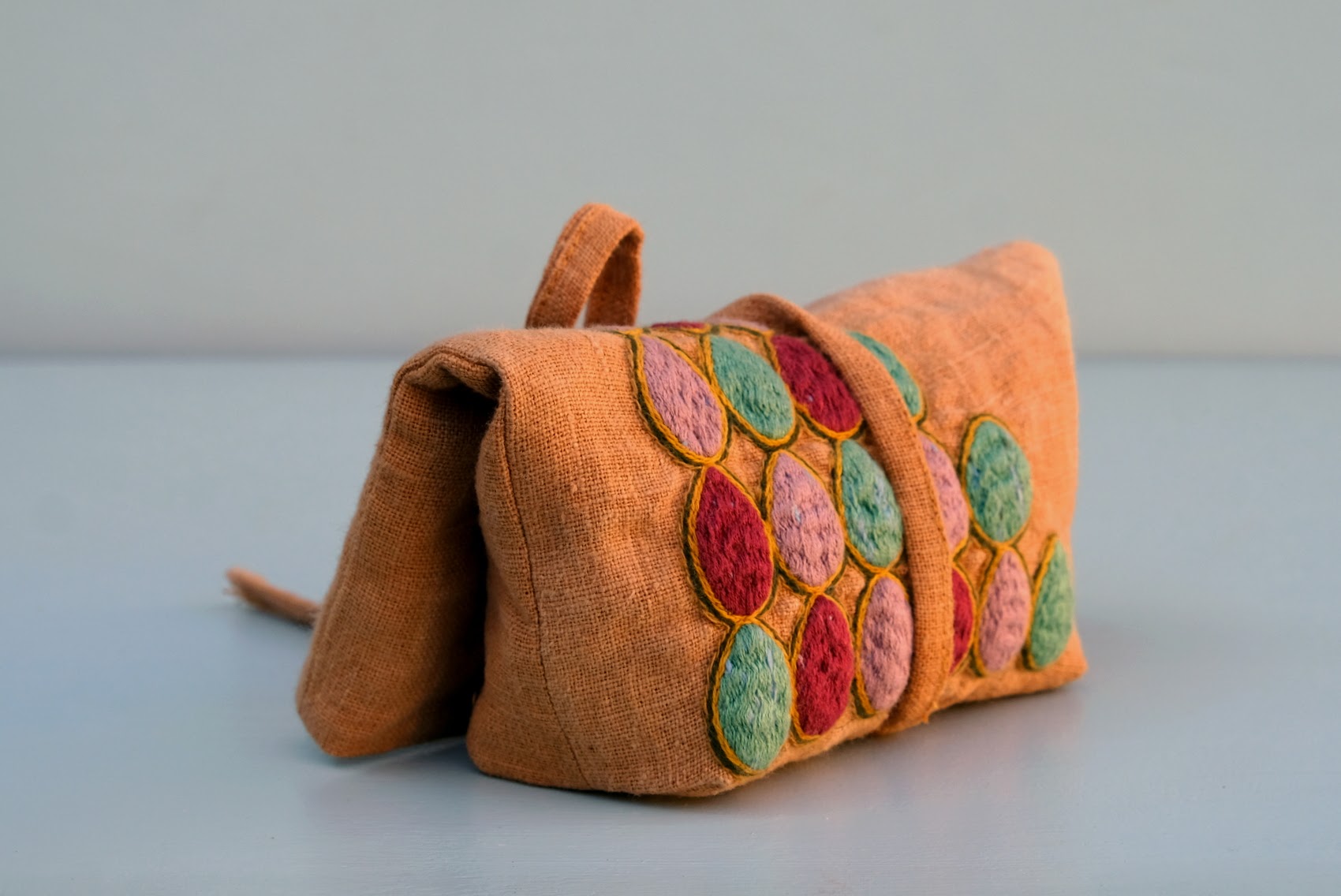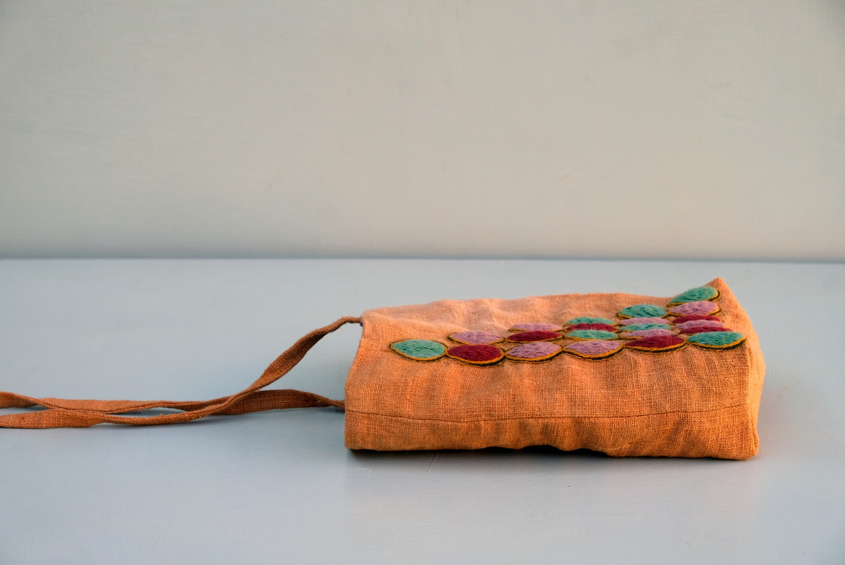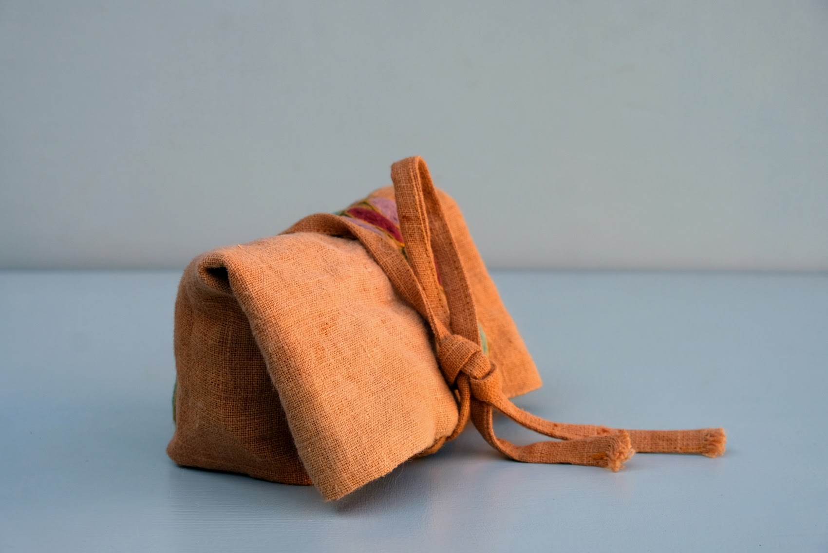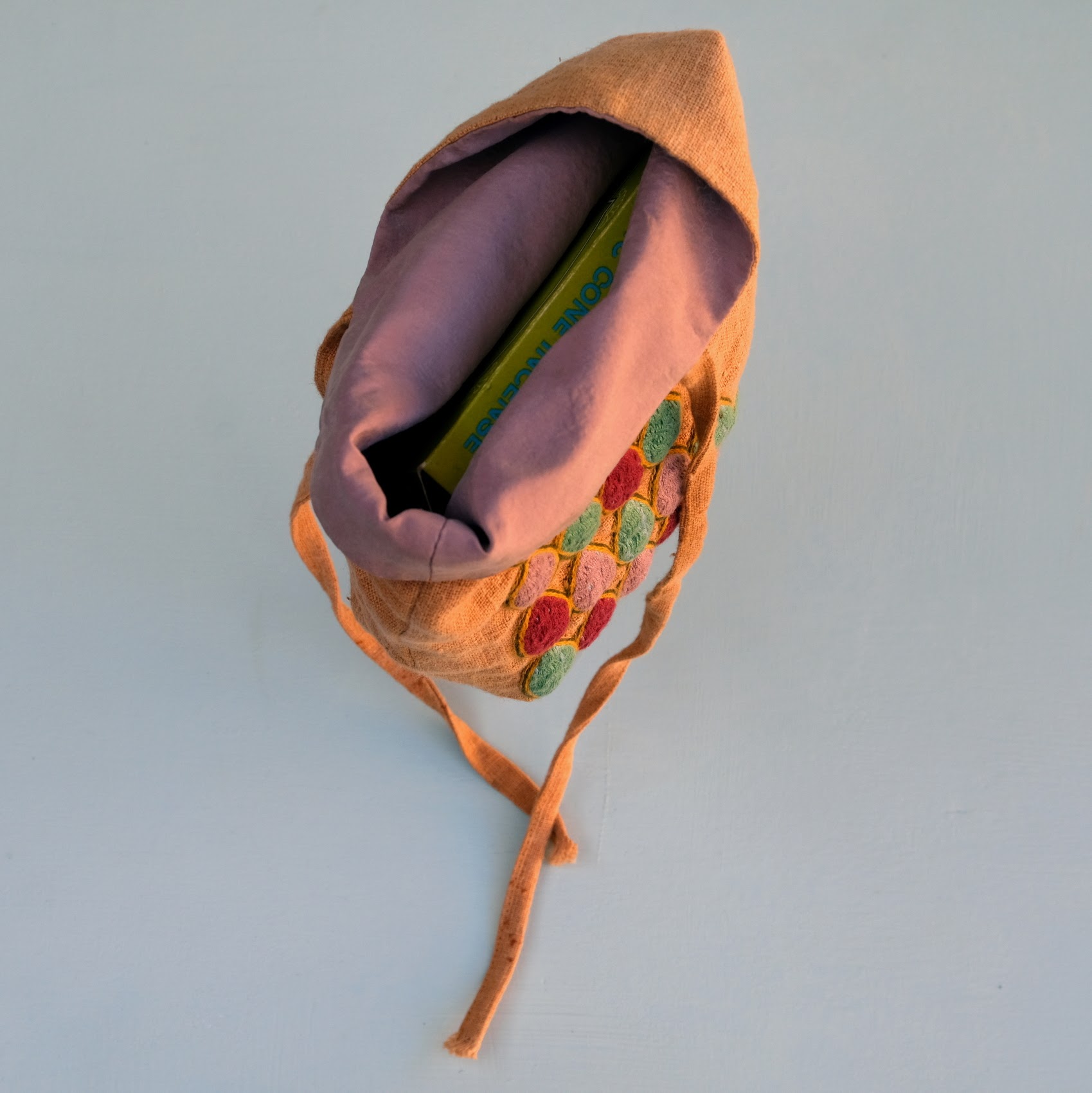Fabric: the outer side is soft hemp cotton, the inside 100 % silk from a discarded shirt.