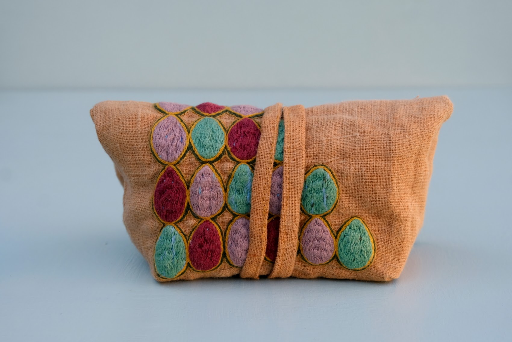 Care: the cotton is prepared in such a way that it keeps the color when you hand-wash the pouch. Do not dry it in direct sunlight, as sunlight always fades colors.