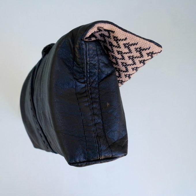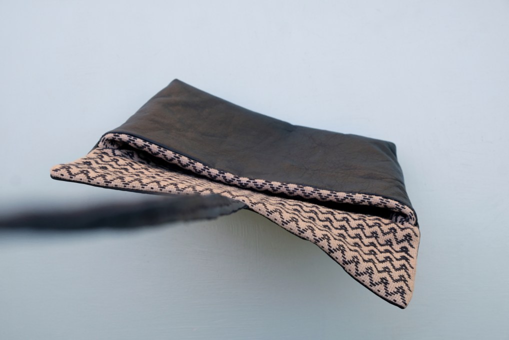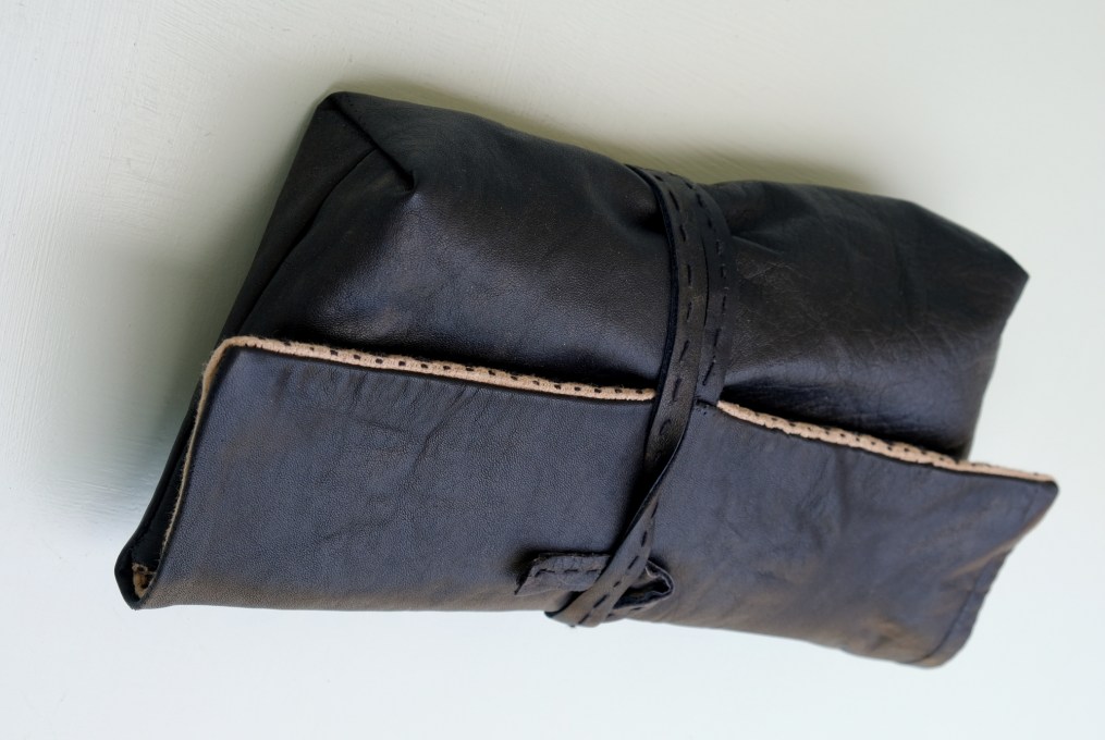 Fabric: cow hide/leather, cut from a trench coat I found in the forest.