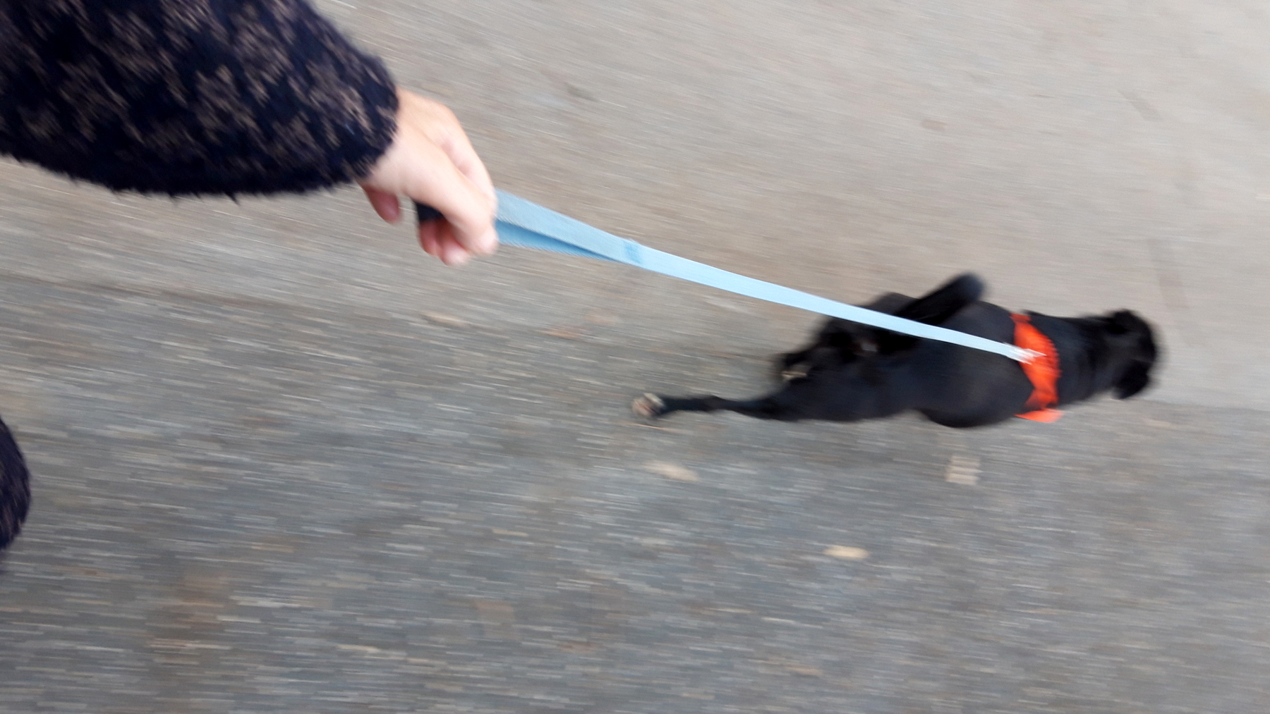It is astonishing to see how eager this little black dog is to walk on a leash, in a neighbourhood she formerly strayed to find food. It is a pure pleasure to care for her. Her fine tuned expressions and sparing attention feels very valuable when she gives it.