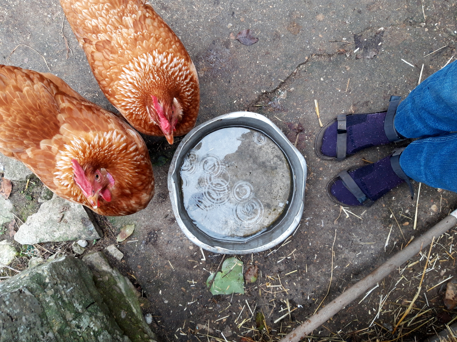 Caring for the chicken is a job I like, and these particular chicken were remarkable: they followed me when ever I was outside, wanting to come indoors and letting them pet their feathers.