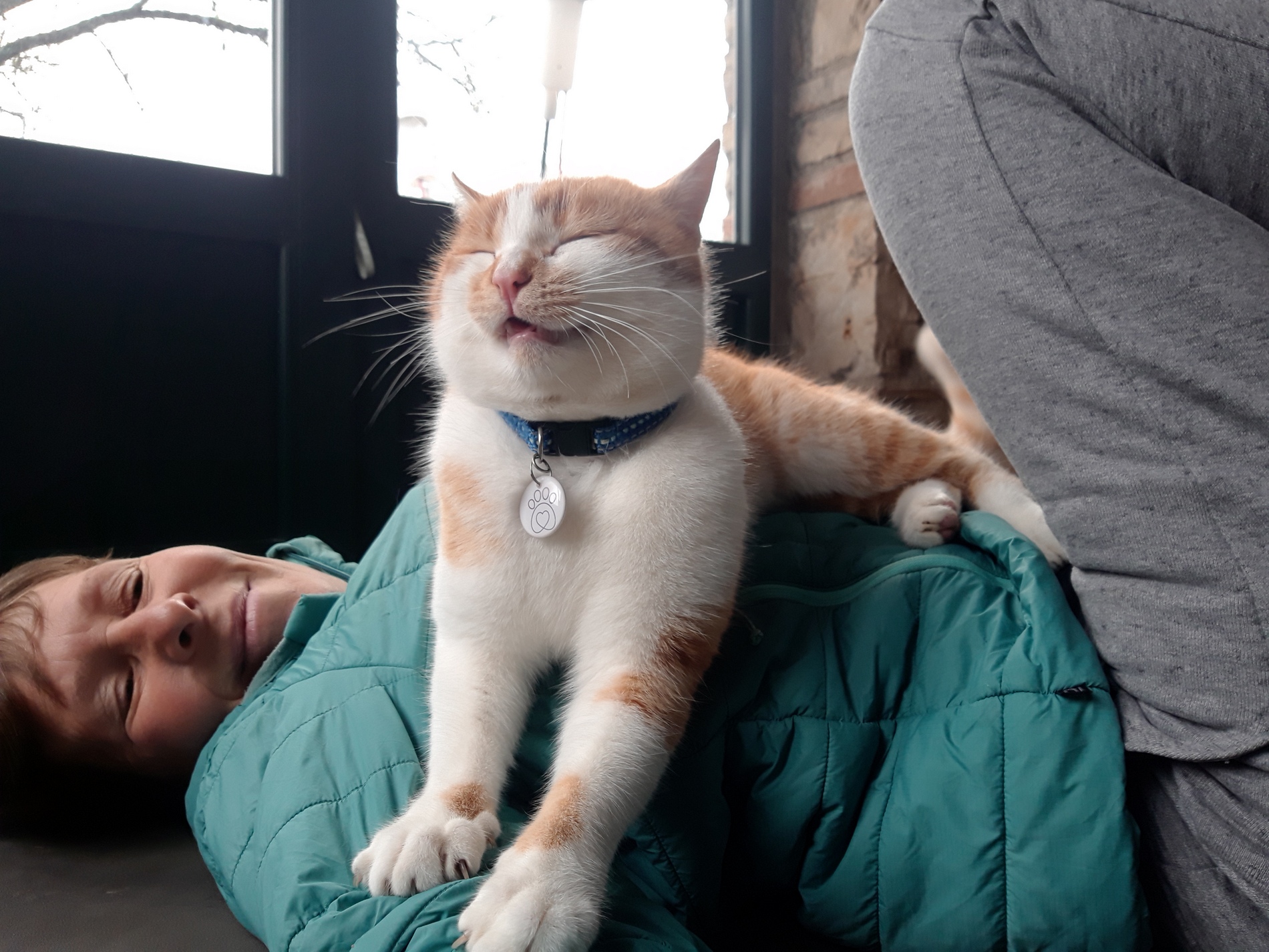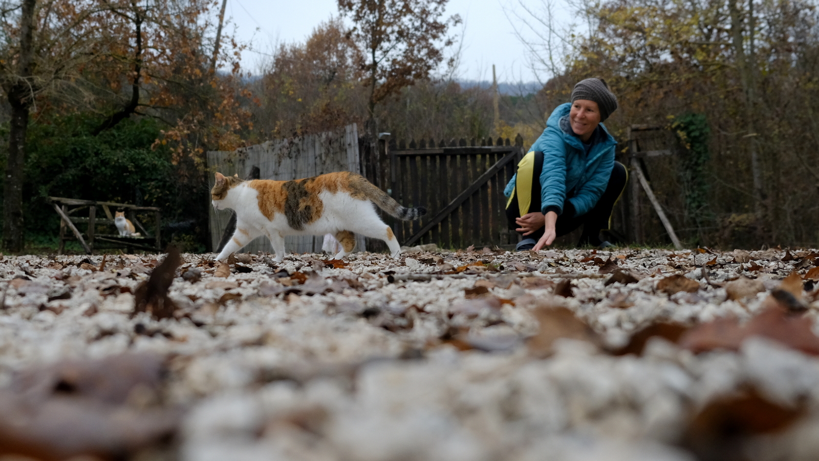 I notice how I like to be somewhere else, and with an end in sight, I enjoy even the misty cold days. I embrace myself as much as I can with the animals and grab all the attention that I can get, to fill up the sudden disappearance of our own cats. That what our neighbor in Hungary disliked sinks in much deeper while away from it: he took the life of our 6 cats. Now, I love the animals without attaching myself to them. It works. This home is not mine, neither are the animals and I feel not stuck but rather the opposite. It is actually a relief to be able to love home and pets without having the responsibility that lasts.