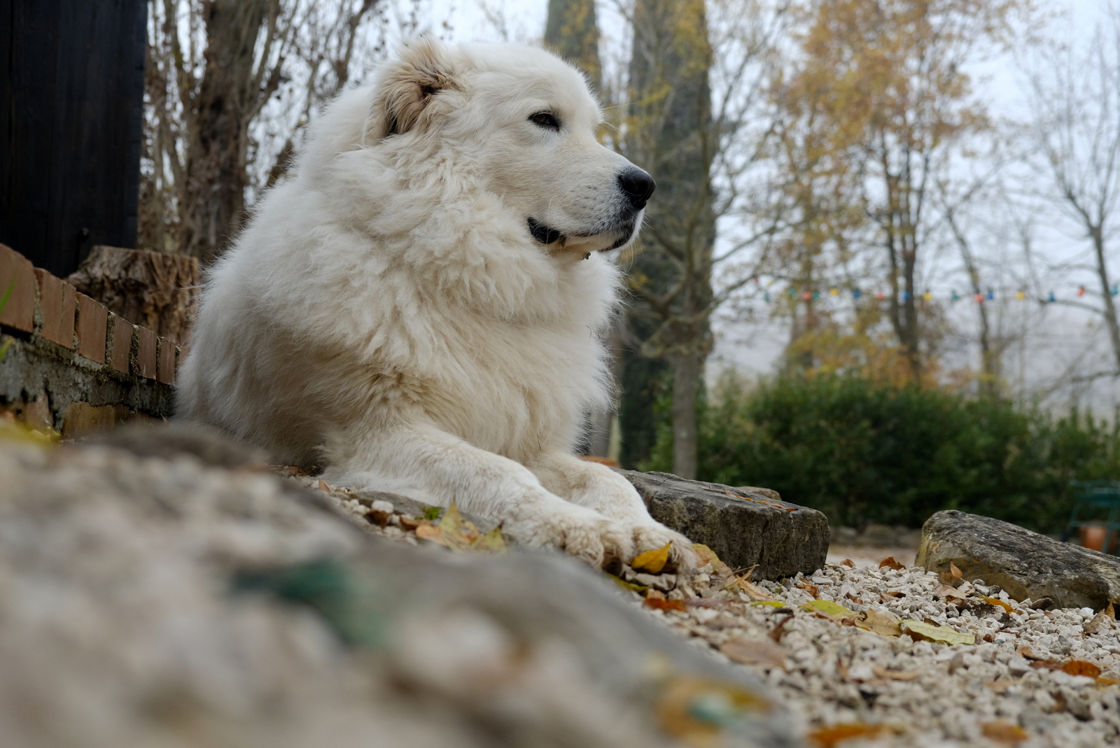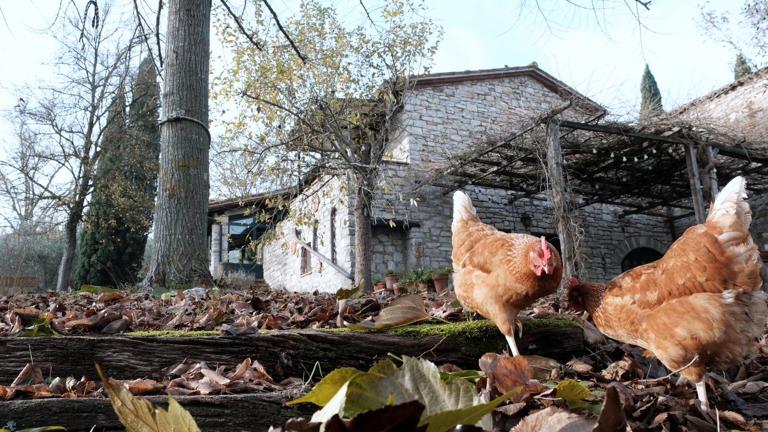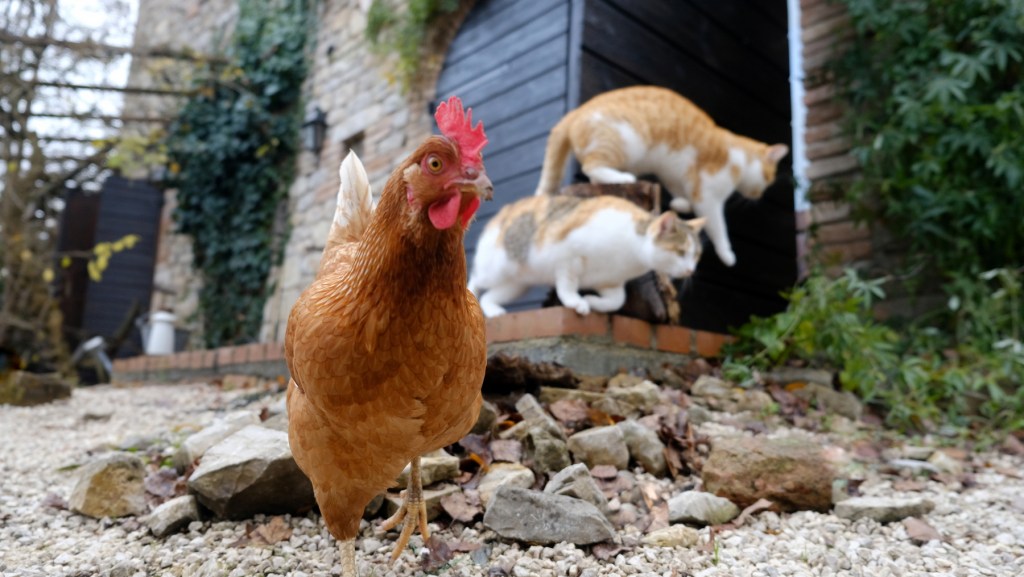 The Umbria home: 1 Maremmano dog, 2 cats, 2 chickens