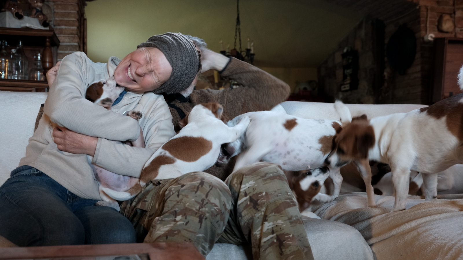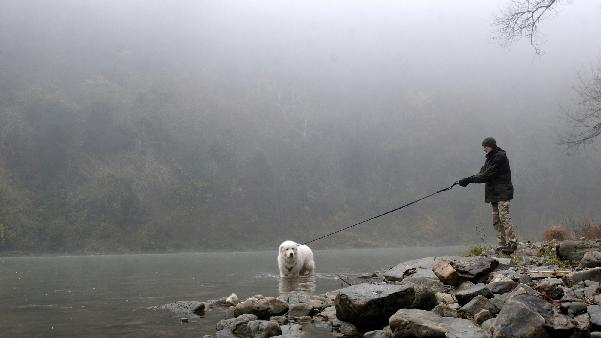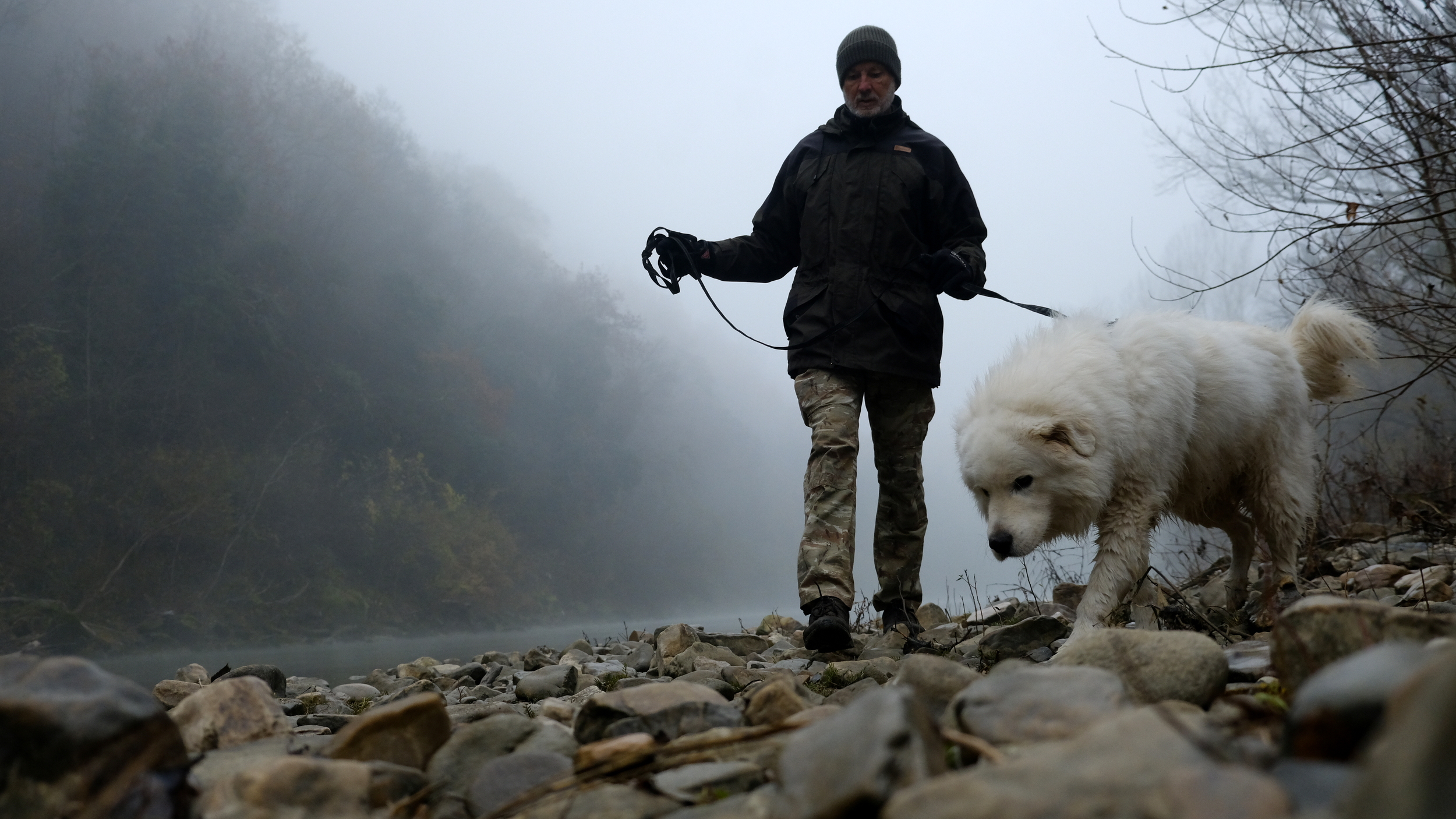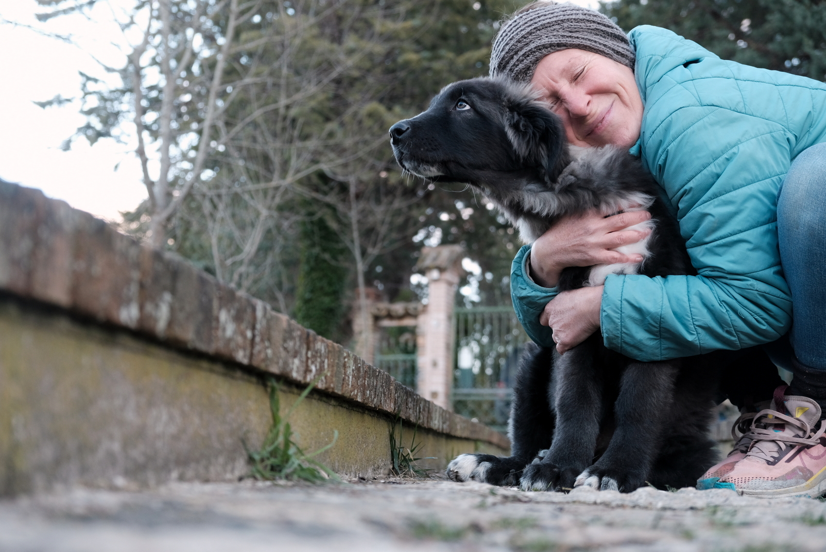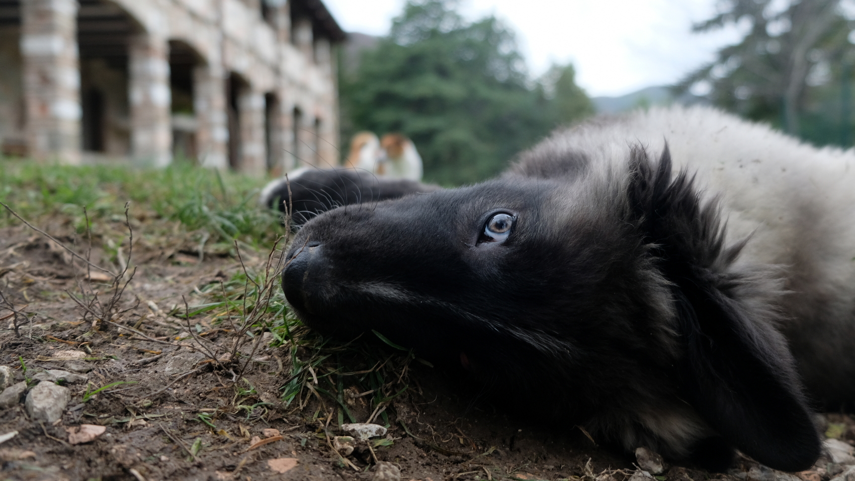 Luca cares for the Maremmano dog behind the fence. This dog was abandoned for years on end, fed only once a week. Until Stefan and Jacqueline bought the place.