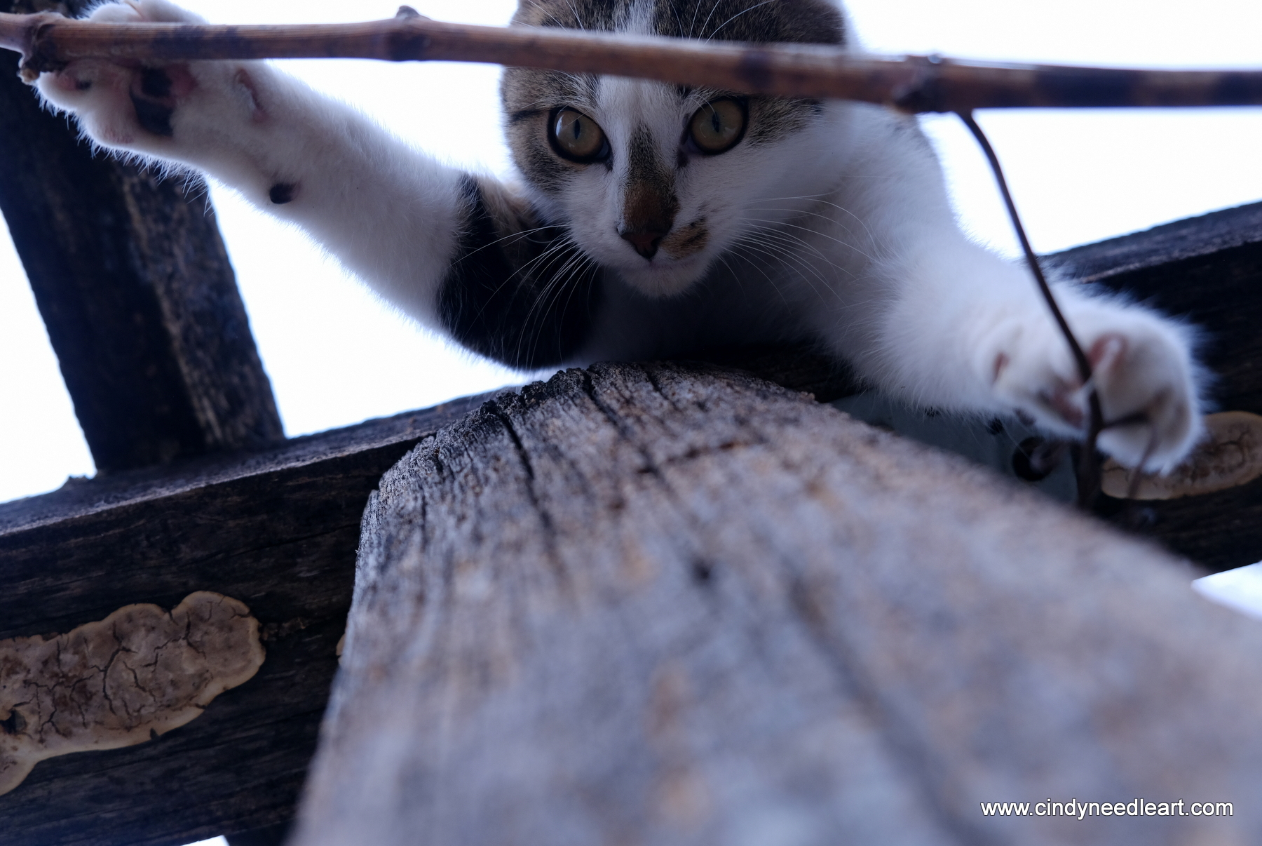 This cat made a huge change: from a timid stray with signs of being abused, now given food and trustful, she shows her very own funny character (with less pleasant seriously digging up the garden).