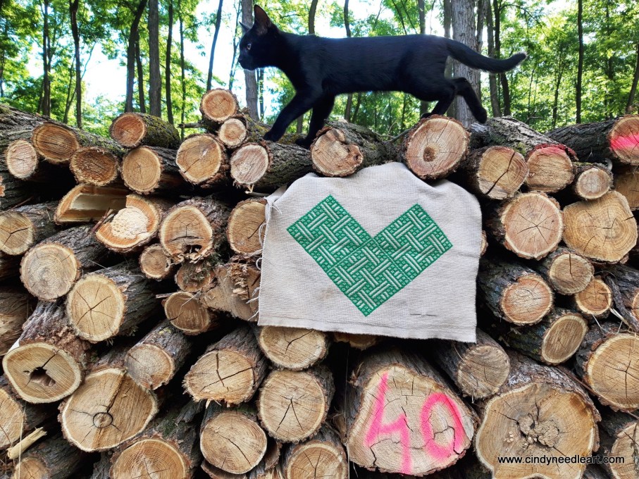 This piece of fabric, dyed with black walnut, and stitched with a Japanese kogin pattern was meant to try out a more intricate pattern. Just one pattern. Instead I happen to duplicate the same pattern until the fabric was filled, and so, a lot happened over the course of this piece of embroidered fabric.