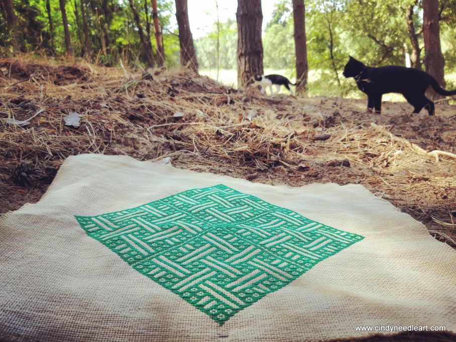 Once settled I thought I’d have no stories to tell about the embroidered pieces of fabric. Well, I do. Not traveling does not mean that nothing happens. Yet, this story behind this pouch is rather sad.
