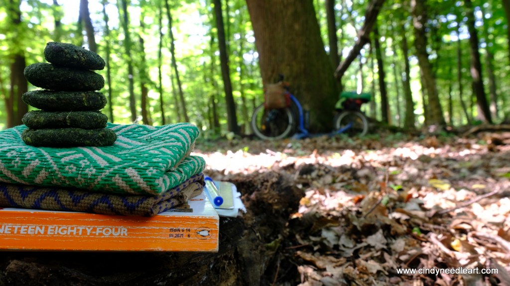 Not only did I try a lot of preserving of home grown veggies. I also had a new experience of our cats who would choose to walk with me to my favorite spot in the woods.