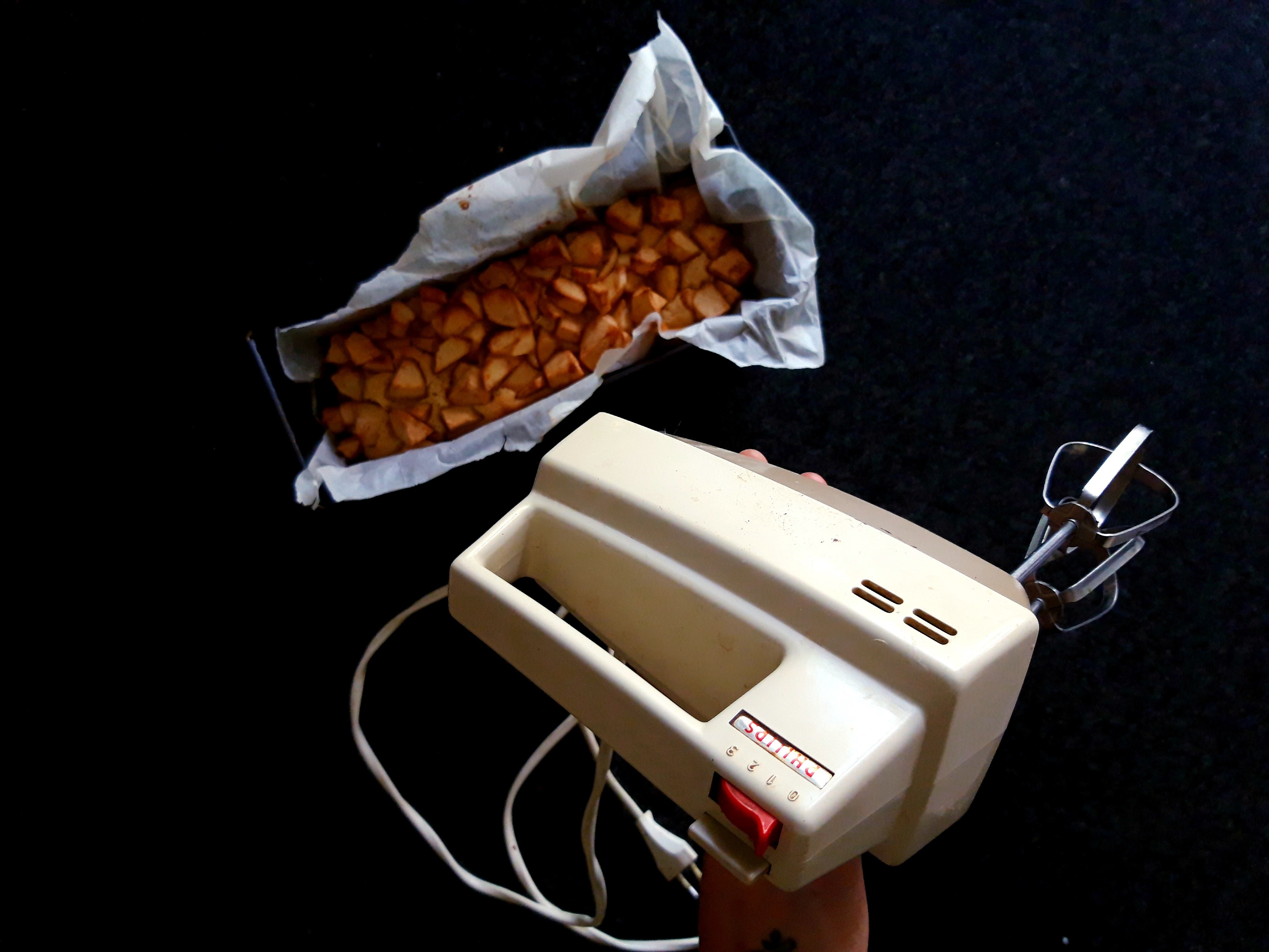 My dad, as a widower, never uses much kitchen appliances and therefor I was thankful for the mixer originating from before I was born, to make my dad an apple cake.