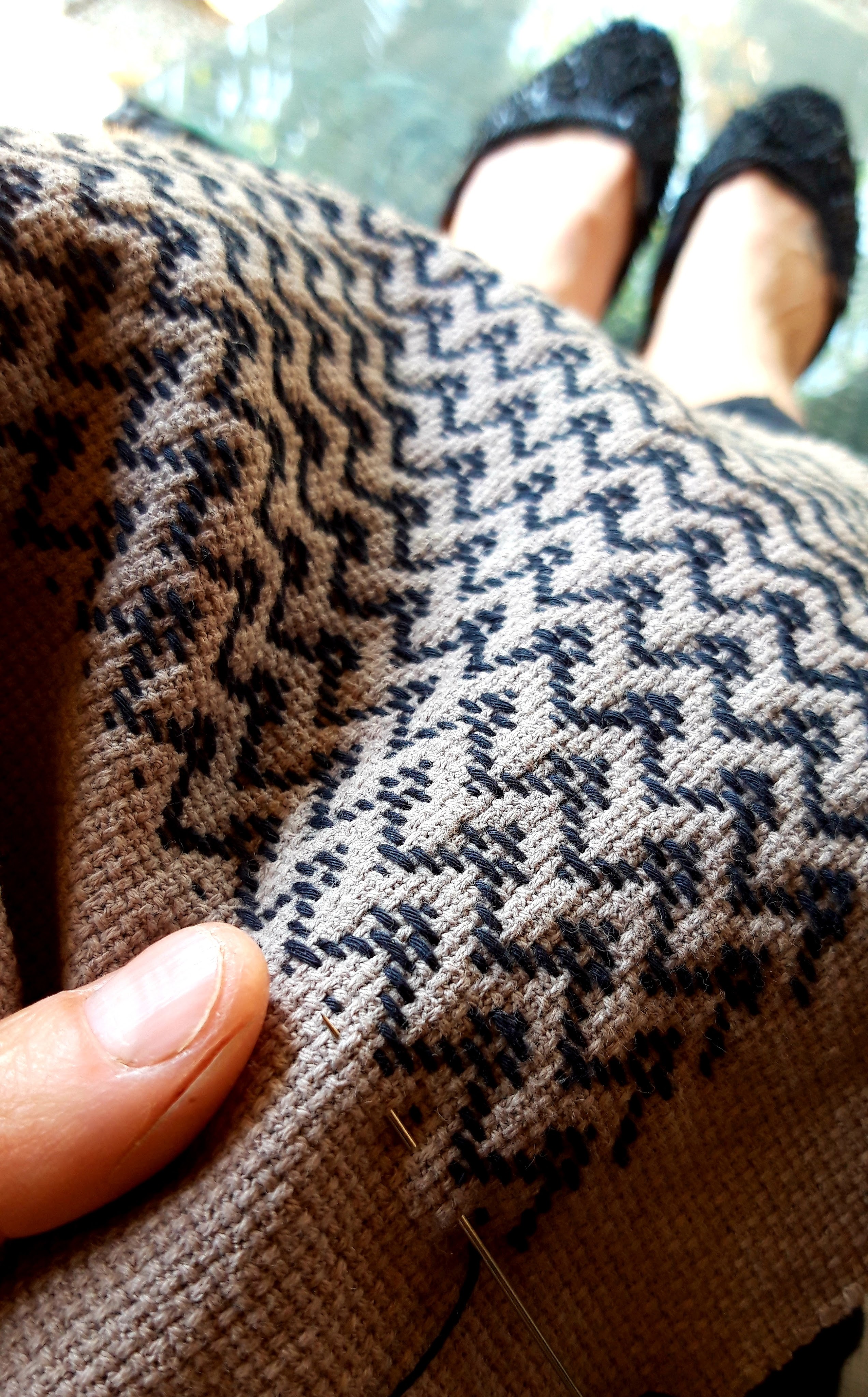 Summer, as I embroidered with the summer starting. I began this swath a bit before I’d go over to my dad in the Netherlands. I always like to have a project going, for the early morning contemplating and only then being able to sit quietly, my hyperactivity not yet kicked in.