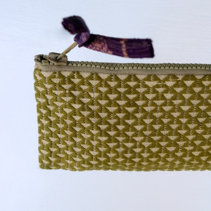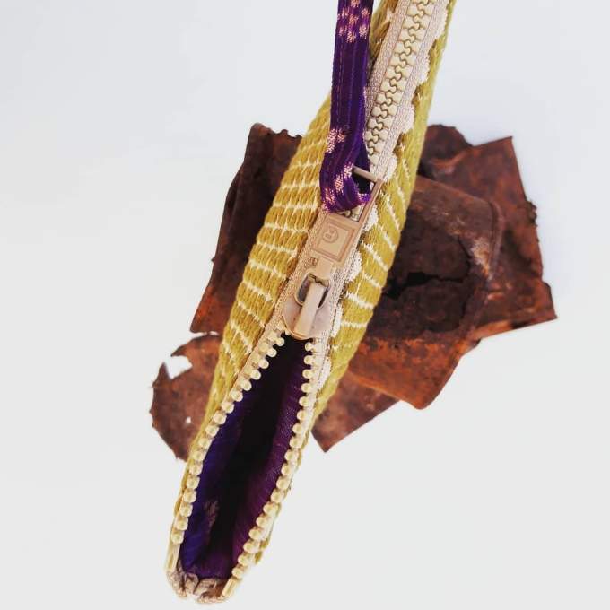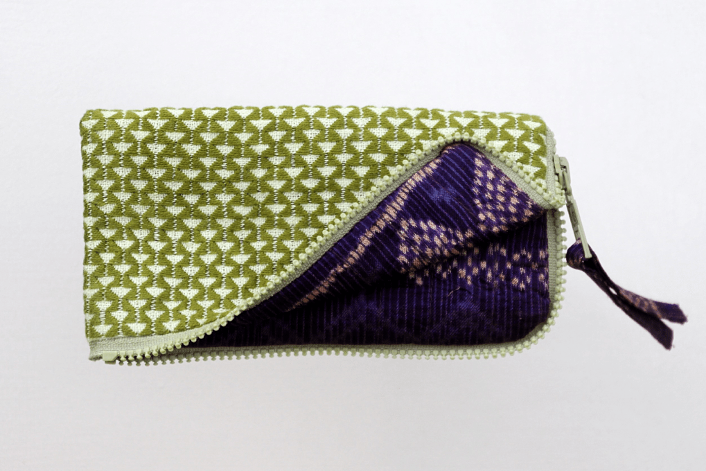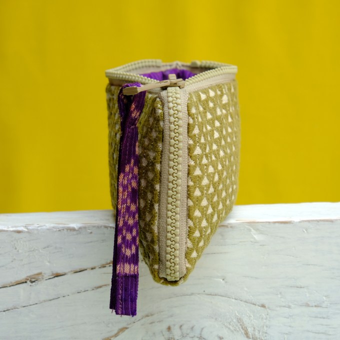 Fabric: heavy quality hemp cotton. The fabric ikat from Myanmar, which I bought on one of my travels, is used as a liner. Sturdy plastic zipper with a ribbon of the same fabric as the liner.