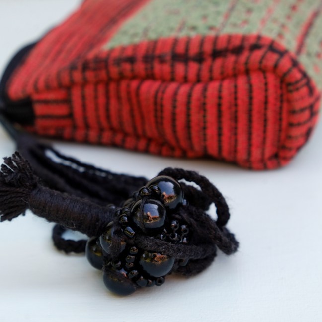 Wooden and glass beads for the tassel. The glass beads I got in Pakistan.