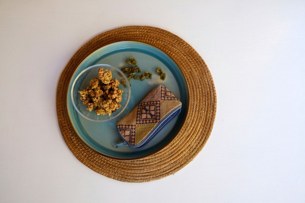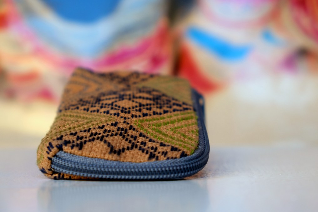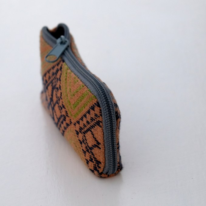 Care: the cotton is prepared in such a way that it keeps the color when you hand-wash the pouch. Do not dry it in direct sunlight, as sunlight always fades colors.