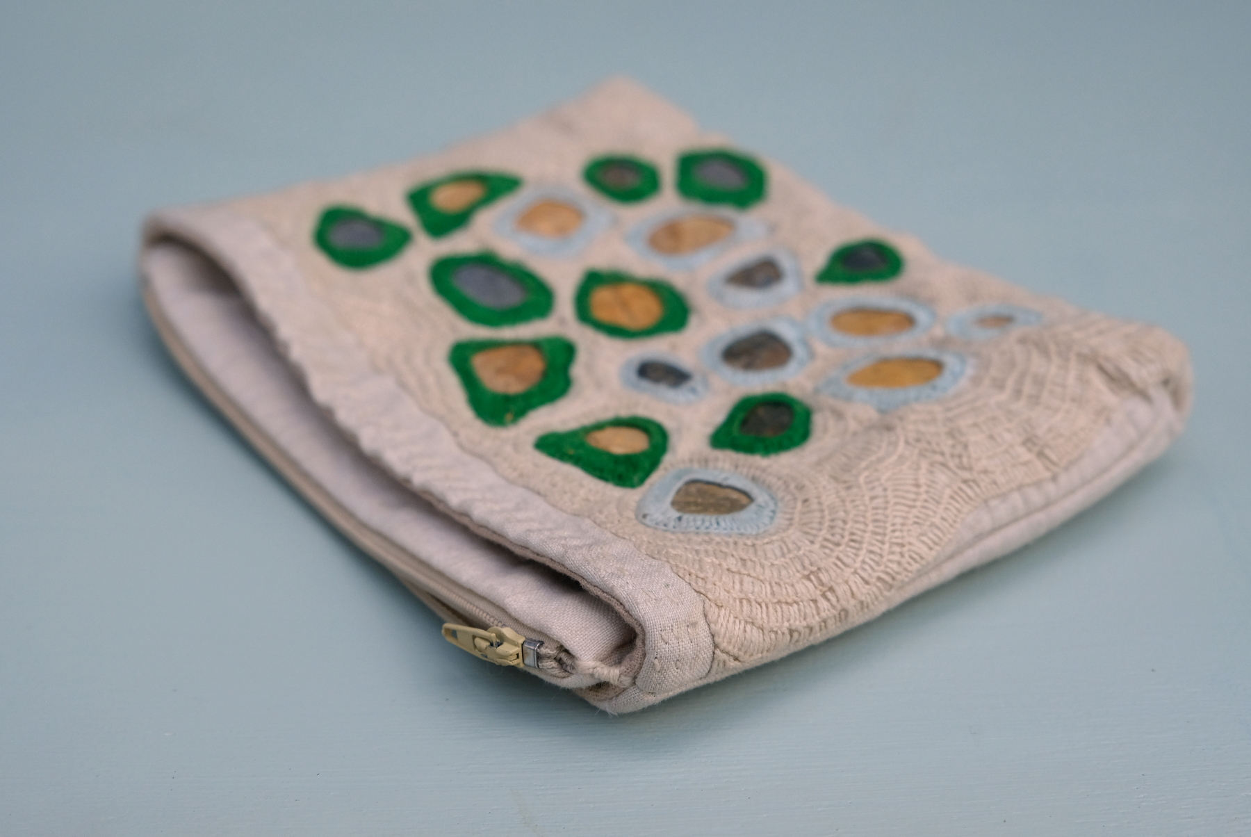 Fabric: the outer pouch is a mixture of hemp cotton and silk, the inside is made from a similar cotton hemp material. They both have their origins from Nepal.